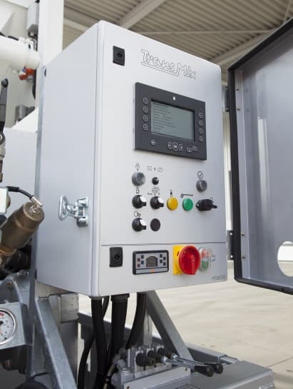 Рабочие элементы системы Trans Mix расположены непосредственно за кабиной водителя. Туда входят приводной двигатель, топливный бак, генератор, регулируемый насос и шланговый барабан. Управление осуществляется через центральный щит управления, смонтированный в задней части бункера. Система управления позволяет задавать точные пропорции смесей и хранить часто используемые рецепты.